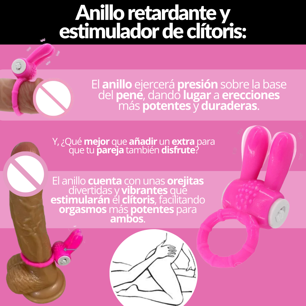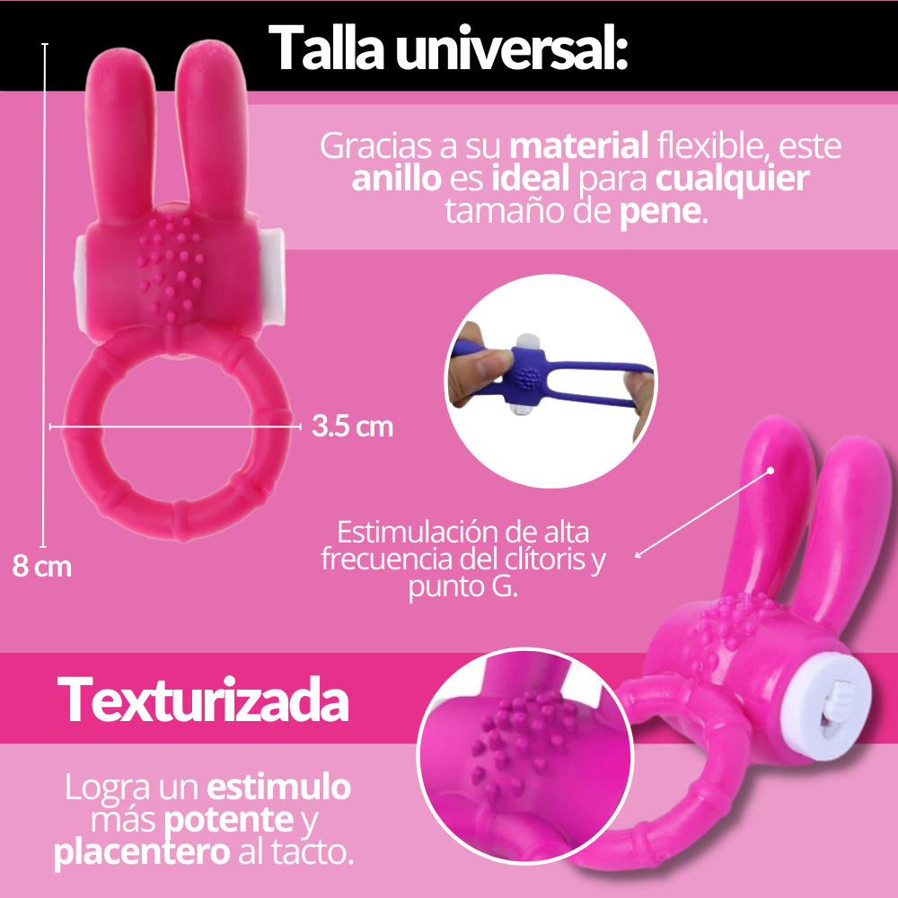 Nuestro anillo vibrador de última generación no solo prolonga el placer masculino, sino que ofrece una estimulación clitoriana intensa gracias a sus "orejitas" texturizadas de alta frecuencia.
